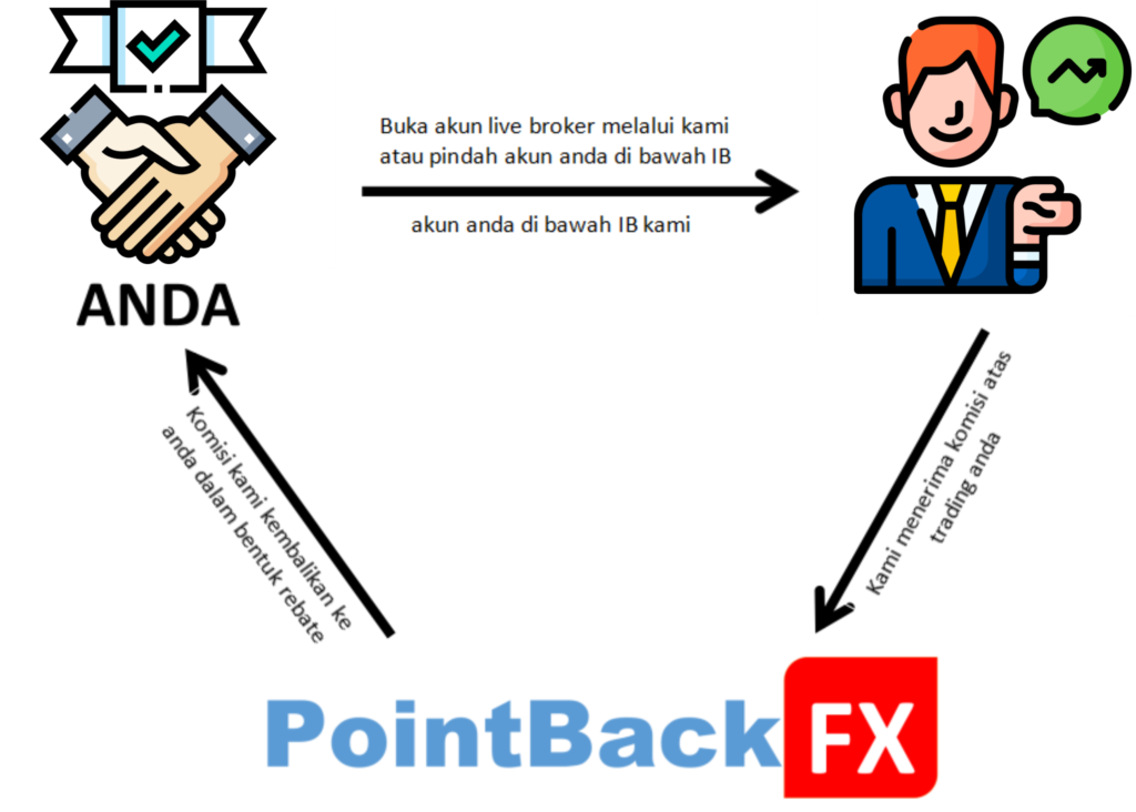 Rebate Forex atau Rebate Cashback Forex adalah pengembalian sebagian komisi atau spread dari broker ke broker IB tanpa memandang untung atau rugi trading, karena perhitungan cashback rebate forex dihitung berdasarkan jumlah lot yang diperdagangkan dengan broker forex tersebut. , kami PBC Rebate Service mengembalikan 80% komisi IB kepada Anda.