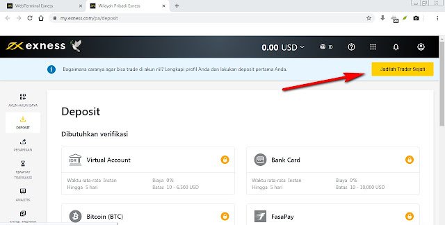 1️⃣ Login ke akun Exness Anda (website atau aplikasi)